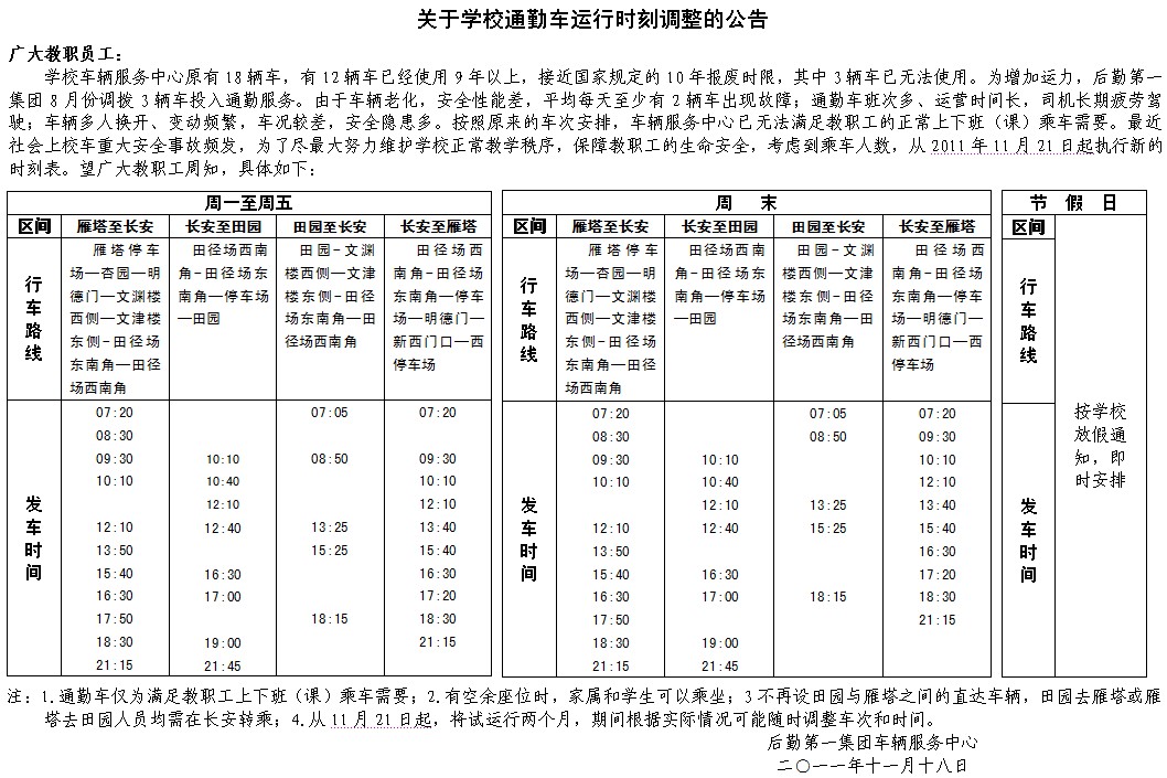 关于公司通勤车运行时刻调整的公告