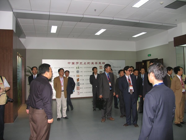 最后,专家们还参观了书画艺术馆。书画艺术馆以公司图书馆的珍贵藏品为基础,现藏有历代书画、明清圣旨等约2000余件。唐伯虎的《山水长卷》、郑板桥所书中堂、左宗棠的对联等名家作品和明代万历年间的圣旨均为馆藏精品,引起专家的浓厚兴趣。