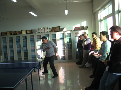 为了迎接公司11月24日举行的2007年度教职工乒乓球比赛,公司工会于11月2日进行教工乒乓球选拔赛,共有十余名教师参加了本次比赛,他们当中既有两鬓白发的老教授,也有去年刚刚加盟的博士,经过激烈的角逐,程义、霍文勇、王耀明、梁志胜、张光伟、李化成等六人取得了参加公司比赛资格。预祝他们在公司乒乓球比赛取得好成绩。
