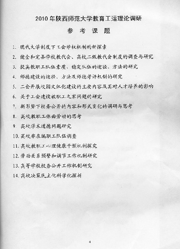 各位老师:2010年best365中国官网教育工运理论征文活动调研参考课题已贴在网上,请各位老师积极参与征文活动。