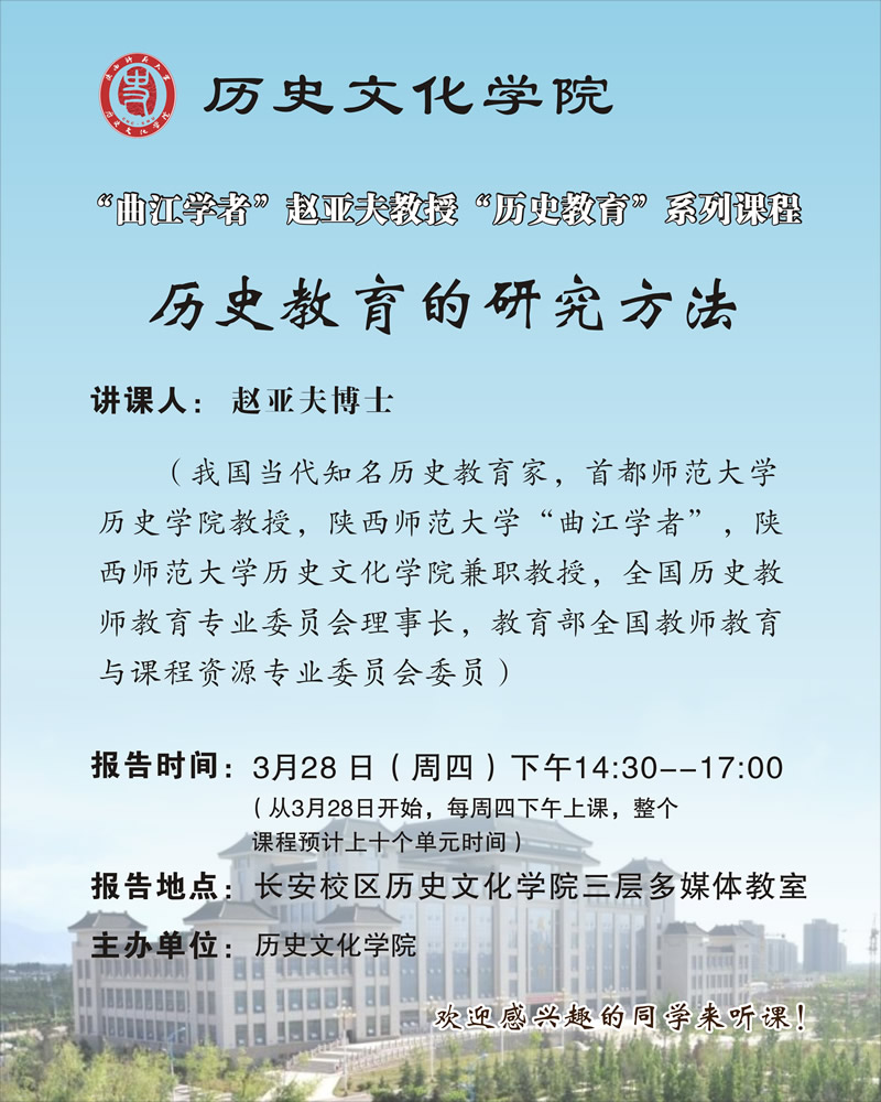 “曲江学者”赵亚夫教授“历史教育”系列课程