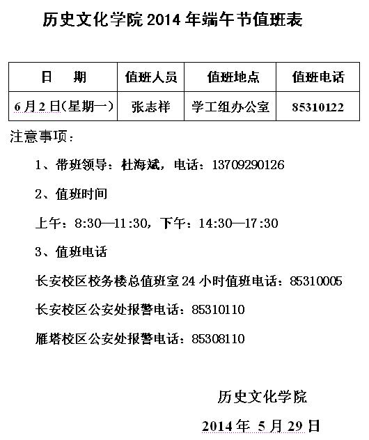best365中国官方网站2014年端午节值班表