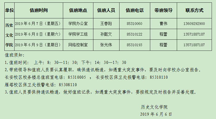 公司2019端午节值班安排表