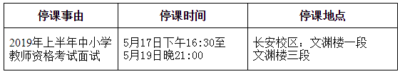 2019年上半年中小学教团队格考试面试将于5月18日至19日在公司长安校区进行,届时将使用文渊楼一段和三段的所有教室作为面试考场,因考试面试需要,2019年5月17日下午16:30后将进行考场布置和设备调试工作。
