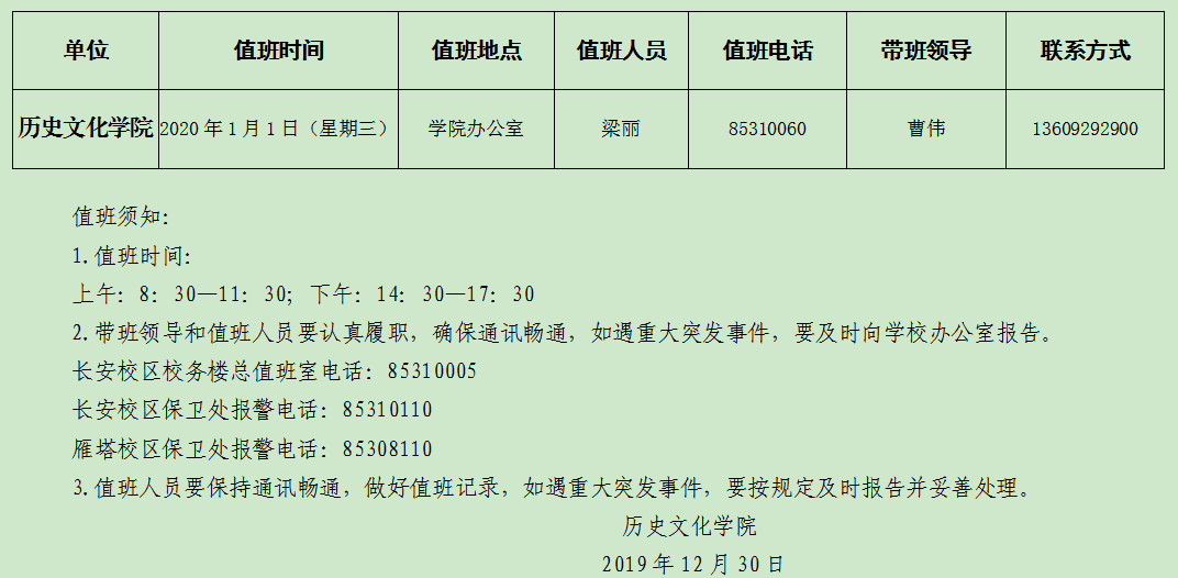 2019年—2020年第一学期期末考试期间通勤车运行时刻表