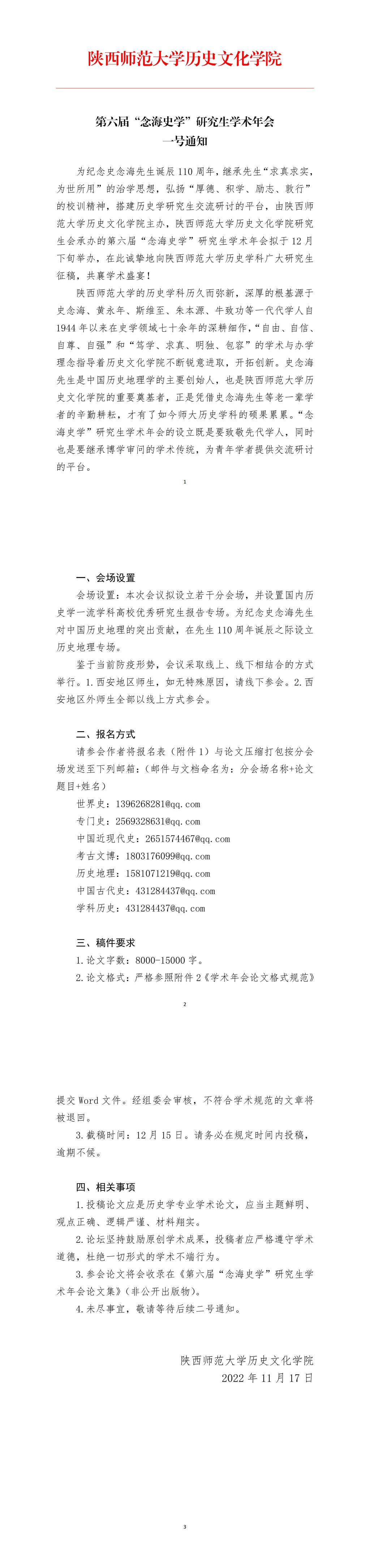 第六届“念海史学”研究生学术年会一号通知
