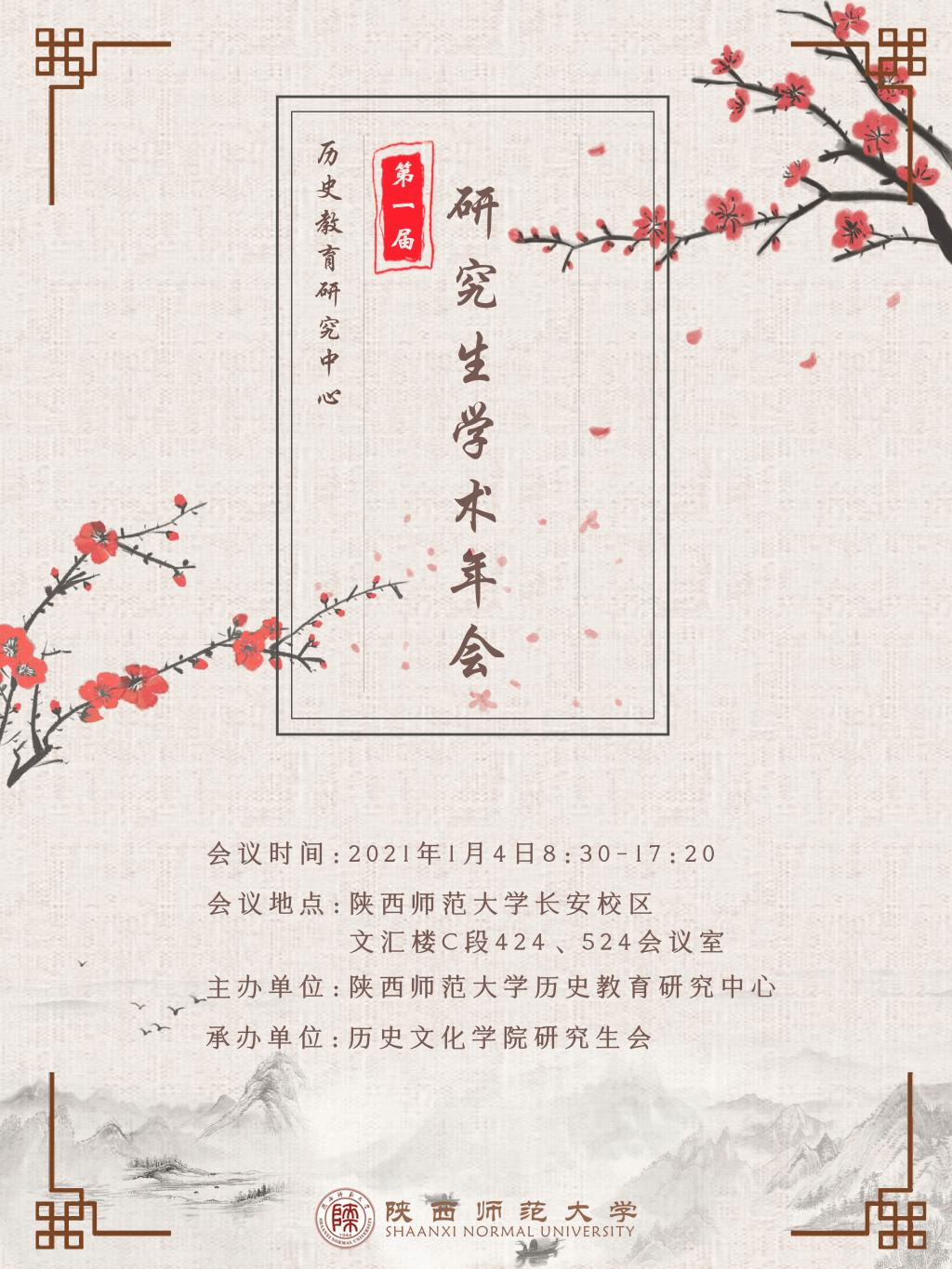 为进一步加强学术交流,推进历史教育发展,提升研究生的学术水平,开阔研究生的学术视野,由best365中国官网历史教育研究中心主办的第一届研究生学术年会将于2021年1月4日(星期一)隆重举行,诚邀您前来共飨学术盛宴!
