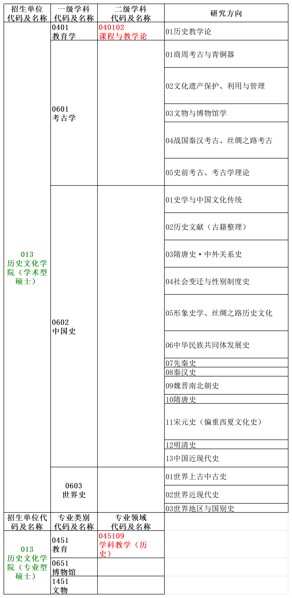 中国史、世界史、考古学、文物与博物馆学专业硕士研究生: