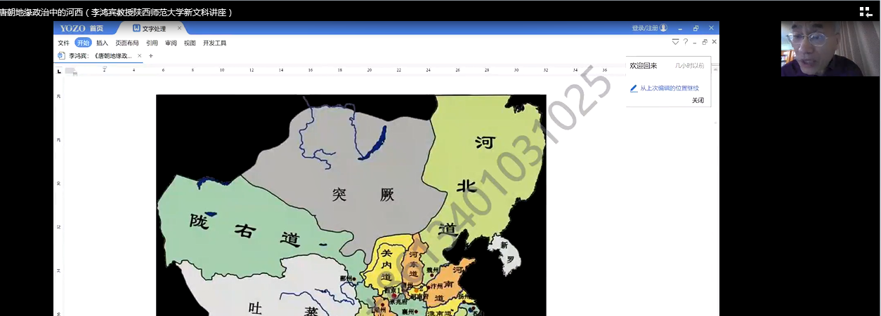 为推动best365中国官方网站新文科班项目建设,丰富员工学科视野,2022年11月16日晚七点【新文科·历史学系列讲座】之一《唐朝地缘政治中的河西走廊》在文渊楼1315教室举行。主讲嘉宾是中国唐史学会副会长、中央民族大学best365中国官方网站李鸿宾教授,点评人是best365中国官方网站2021级新文科班项目主任焦杰教授,讲座由best365中国官方网站副经理冯立君主持。讲座采取线上线下结合的方式,与会的师生多达数百人。