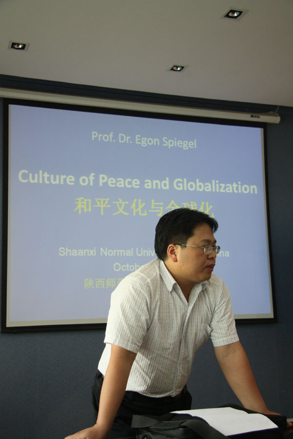 10月9日,和平学系列讲座在公司三层多媒体教室举行,分别由南京大学历史系刘成副教授和德国Vechta大学和平学教授Egon Spiegel讲授,公司李秉忠副教授主持了本系列讲座。