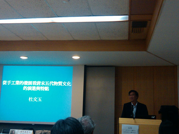 在台湾的最后三天,杜教授参加了《唐代文史研究的新视野:以物质文化为主——纪念杜希德教授国际研讨会》。会议在台北召开,与会的著名学者有:哈佛大学特级教授宇文所安(Stephen Owen)、台湾中央研究院院士兼副经理王汎森、日本东京大学教授户仓英美、中央大学教授妹尾达彦、韩国延世大学教授金长焕以及台湾、大陆的学者数十位。杜希德教授,中国大陆翻译为崔瑞德,是著名的国际汉学大师,曾先后在英国剑桥大学、美国普林斯顿大学任教,有名的《剑桥隋唐史》一书便是他主编的。这次会议的受邀者多为国际文史学界素有成就的资深学者,会议主旨在于开拓唐代文史研究的新视野,尤其注重探讨物质文化研究的方向问题,并纪念杜希德这位汉学大师。杜文玉教授提交的论文题目是《从手工业的发展看唐末五代物质文化的演进与特点》,通过对手工业发展的分析,探讨了这一历史时期物质文化的演进情况及发展新特点,和与会学者就相关问题进行了讨论。会议期间,与会学者们还参观了中央研究院,并接受了院方的宴请。