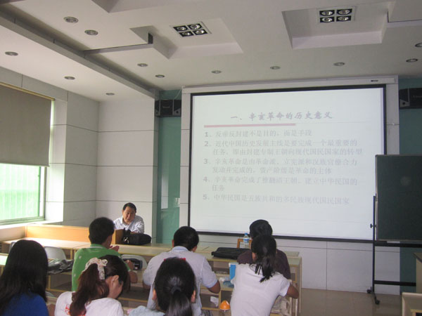 报告上,陈谦平教授以辛亥革命为切入点,强调采用国际化的视角来认识近代中国的变化。陈教授首先从不同于传统史学观点的角度论述了辛亥革命的历史意义,着重强调从现代化,社会转型的角度来考察。在以由封建专制王朝向现代国民国家转型为重要任务的近代中国,辛亥革命——由革命派、立宪派和汉族官僚合力发动并完成,完成了推翻清王朝,建立了一个五族共和的多民族现代国民国家的任务。其次,陈教授以“国际化发展:认识近代中国的新视角”为标题开始了报告的主体部分,强调以国际化视域观察近代中国的历史,大一统不是认识中国历史的唯一视角,并分析了民族主义视角的局限性。在二十世纪中国由传统向现代转型的一百年中,国际化对中国的近代化发展影响深远,涉及社会政治、经济、文化方方面面。随后陈教授又以丰富的图片资料,生动形象的表现了国际化在近代中国的表现。陈教授语言风趣幽默,举例生动形象,报告会场气氛热烈而活跃。