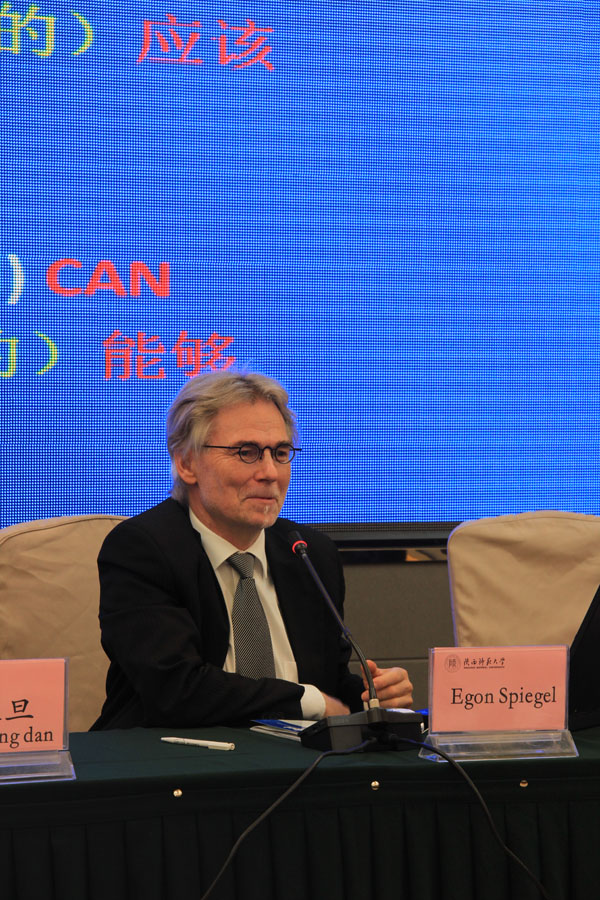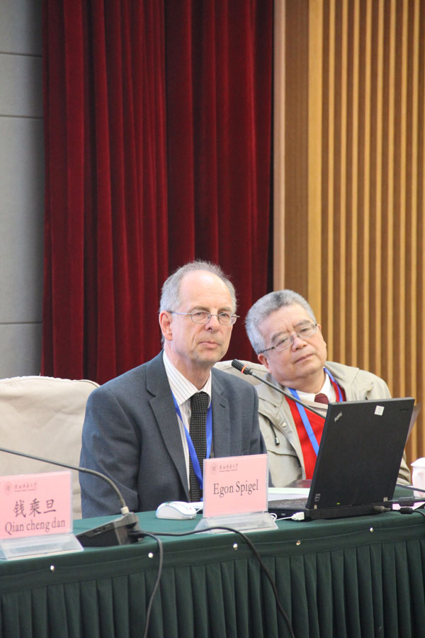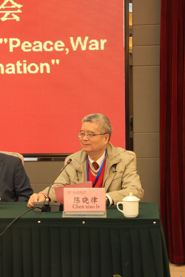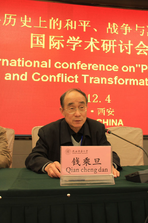 北京大学钱乘旦教授首先为大家作了题为《和平学面临的任务》的报告。钱教授分别从当今世界的现状、分析了造成当今世界现状的主要原因在于国际力量失衡以及和平学应当做什么等三个角度解释了当今和平学面临的主要任务。艾伦·汉特教授作了《和平建设的困境与中国的全球实力》的报告。他介绍了“和平建设”的含义及框架,并联系到当今中国全球实力明显提升,在国际和平事务中的作用也更加突出。赵文洪研究员在会议中作了题为《正确对待战争的精神遗产》的报告。他概述了战争的精神遗产的基本内容,同时归纳了正面和负面精神遗产的属性,指出应当怎样对待战争的精神遗产。德国艾根·斯必格尔教授作了《在全球的“和平文化和非暴力”视角来看冲突的化解——实践、原则和角度》的报告,指出冲突化解是的任务和方式。陈晓律教授分别评论了四场报告,认为以上报告角度犀利,题目新颖,人类应当努力找到化解战争与冲突的理念,实现和平的目标。