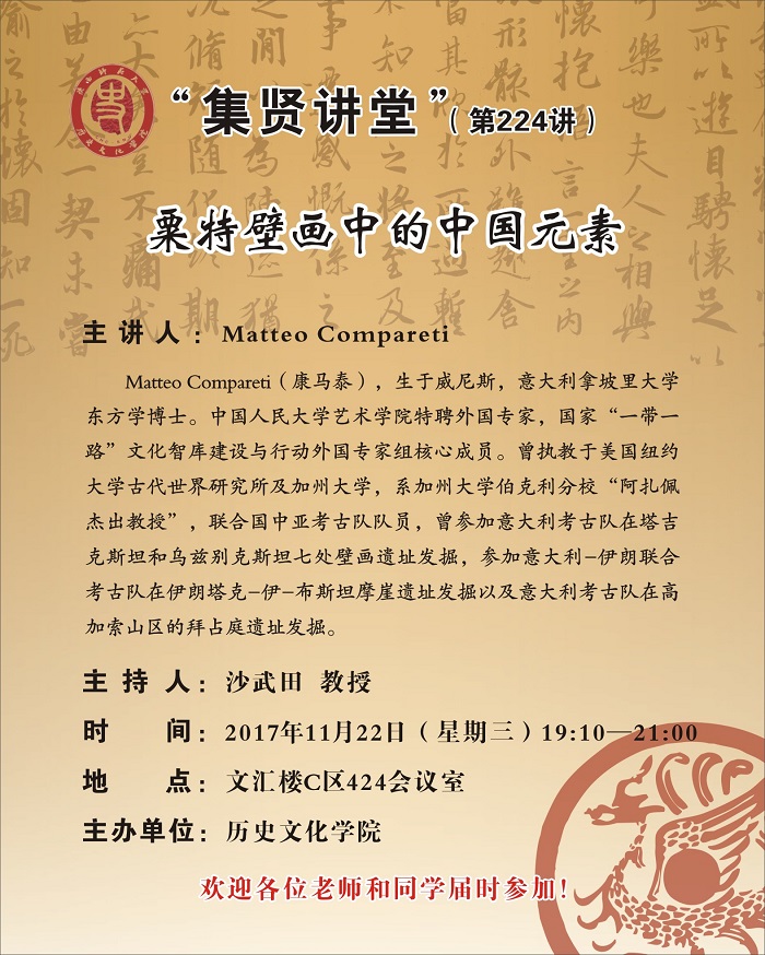 Matteo Compareti(康马泰),生于威尼斯,意大利拿坡里大学东方学博士,中国人民大学艺术公司特聘外国专家,国家“一带一路”文化智库建设与行动外国专家组核心成员。曾执教于美国纽约大学古代世界研究所及加州大学,系加州大学伯克利分校
