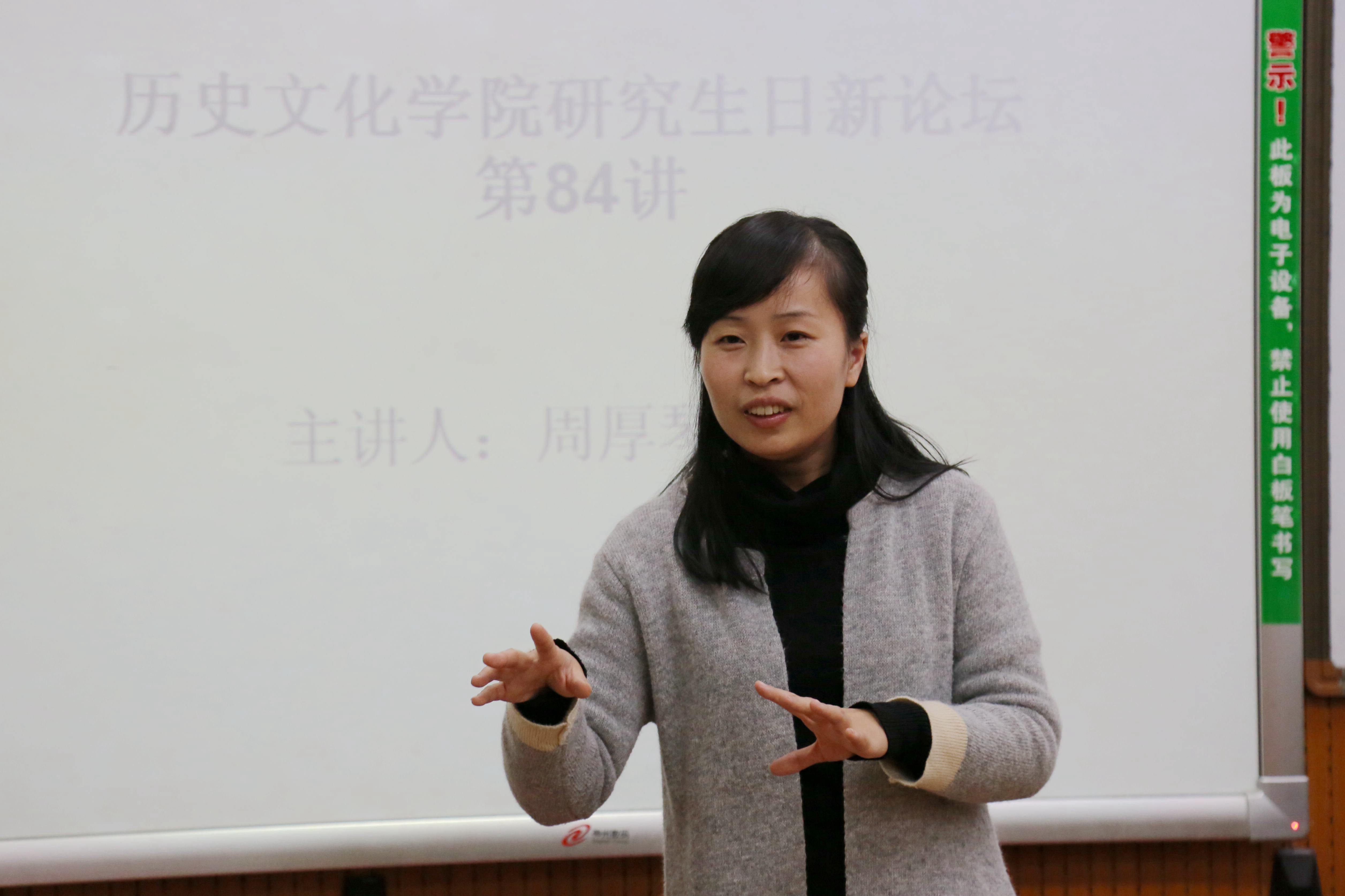 王猛代表学术部介绍了周厚琴博士的学术研究情况。接着,周厚琴博士首先分析了“专制君主制”、“绝对君主制”、“独裁君主制”三者之间的区别,并介绍了其选用“专制君主制”的原因。周厚琴博士从基辅罗斯的非专制政治、俄国专制君主制的起源、雏形、确立四个方面详细讲解了俄国专制君主制的发展情况。最后,周厚琴博士与在场的研究生进行了热烈的交流,回答了同学们有关俄国政治制度、论文选题、文献综述和写作规范等方面的问题。