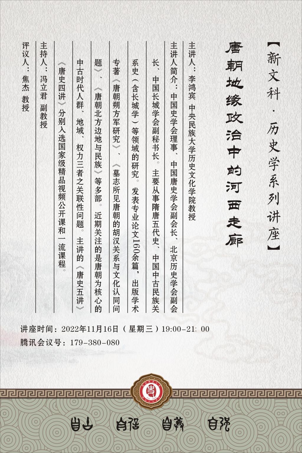 新文科系列讲座:唐朝地缘政治中的河西走廊