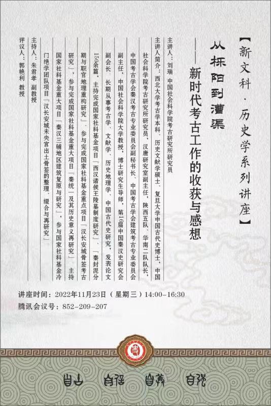 新文科系列讲座:从栎阳到漕渠——新时代考古工作的收获与感想