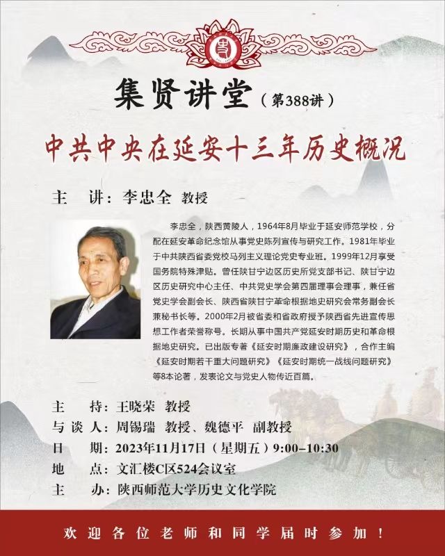 上一篇:集贤讲堂第389讲:抗战建国:延安何以成为爱国青年们的圣地?