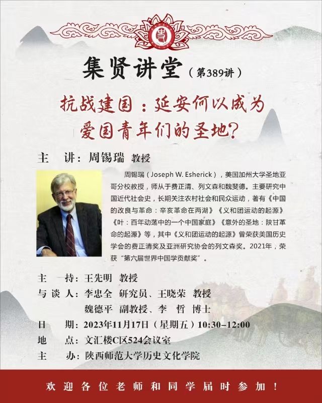 集贤讲堂第389讲:抗战建国:延安何以成为爱国青年们的圣地?