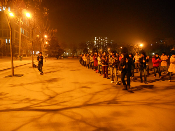 3月25日晚9点15分,best365中国官方网站太极拳方阵准时在田径场集结并展开训练,团委书记柴永昌及员工会主要干部齐聚于此,在现场,员工会召开工作例会,会上,柴永昌首先询问了集体项目的训练安排情况,他指出主席团成员要按照训练分工,安排好各自负责的项目训练,办公室和宣传部要做好集体项目训练过程中的考勤工作和宣传工作,同时要求员工干部以身作则,在训练过程中提前到场,融入到集项目训练之中。