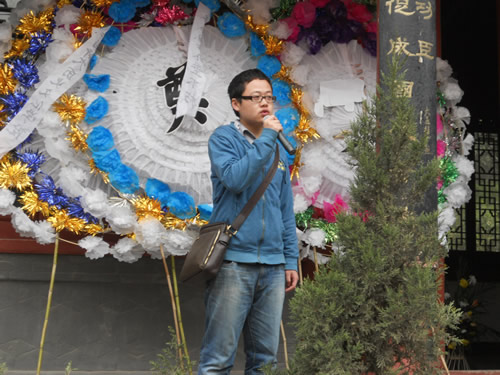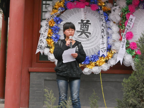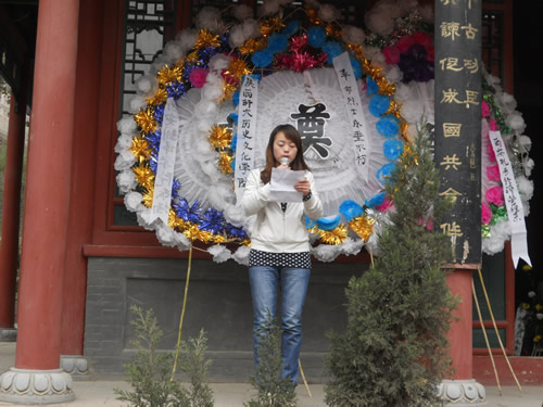 哀悼仪式在9:30正式开始,best365中国官方网站组织部吕树杰担任主持。首先参与祭扫活动的全体师生向革命烈士致哀,默哀一分钟,在深沉的音乐声中向革命烈士敬献花圈,以托哀思;之后由员工代表岳可可宣读哀悼词,表达了全体师生对烈士们的敬仰与悼念,回顾了杨虎城将军为中国革命所做出的杰出贡献,其英勇事迹对当下青年有着重要的启迪作用,深刻地呼唤我们深思和自励;最后孙巍发言,他指出现代老员工应树立正确的世界观、人生观、价值观,理性爱国,践行社会使命,为社会主义现代化建设作出努力和贡献。