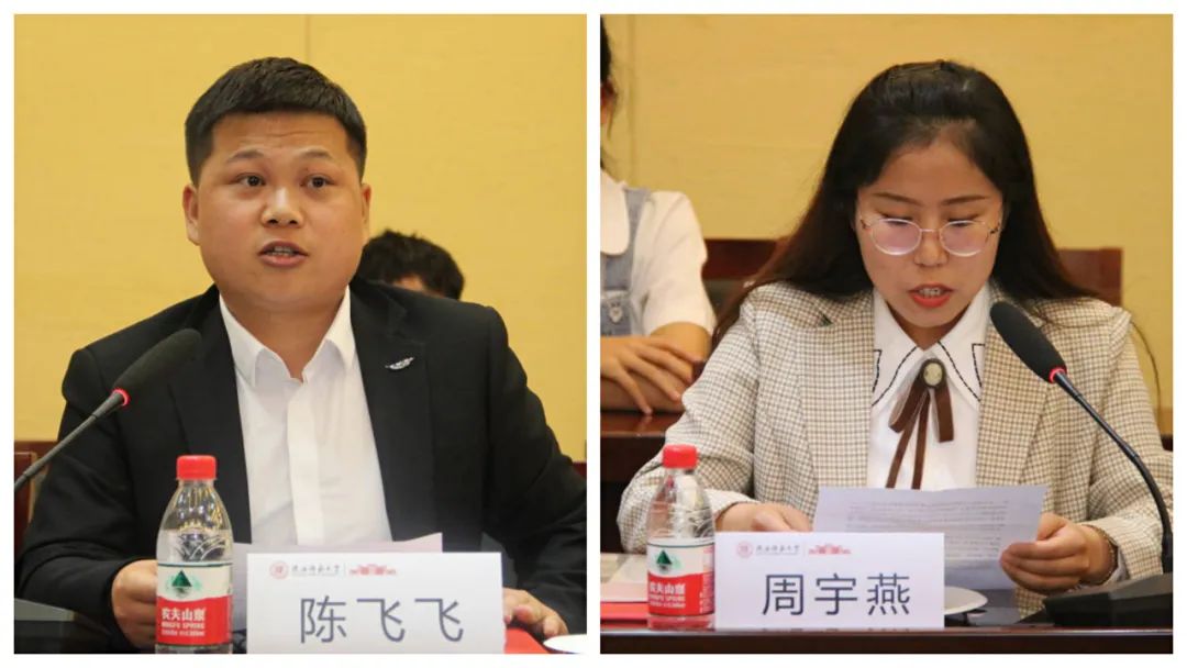 2019级博士研究生陈飞飞及2019级硕士研究生周宇燕作为获奖员工代表发言。陈飞飞在对牛致功先生表示敬意、对公司表示谢意的同时,也对这一奖项给予了美好祝愿。他回顾了自己在陕师大十年的求学历程,切实感受到了“传承”的力量,并希望通过磨炼自身的学识与能力,接好隋唐史研究的接力棒。周宇燕不仅对牛致功先生学术的科学态度、治学的严谨态度表示崇敬,也对牛先生的慷慨捐赠表示感恩。她希望自己能够继承牛先生的这份精神,从中汲取养分,获取力量,为隋唐史研究做出自己的贡献。