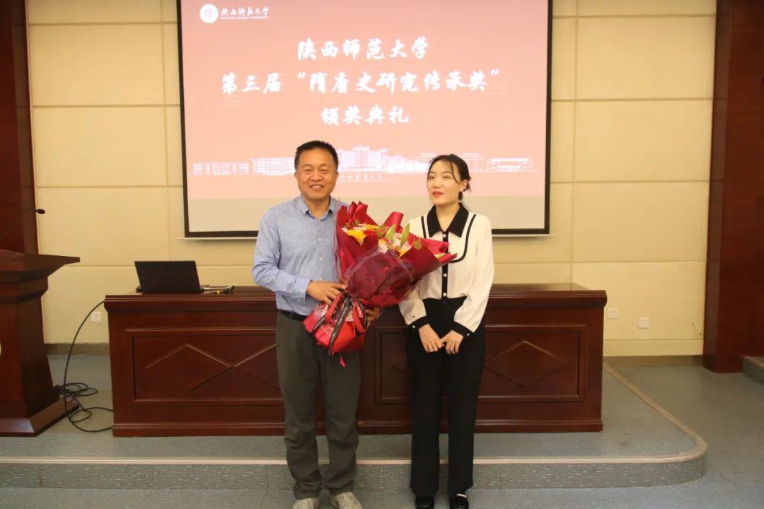 5月20日上午,best365中国官方网站、中国唐史学会在best365中国官网长安校区文汇楼A段111报告厅举办第三届“隋唐史研究传承奖”颁奖仪式。best365中国官方网站经理李秉忠,副经理冯立君、李晨子,以及来自best365中国官方网站、西北历史环境与经济社会发展研究院等十余位学者,牛致功先生家人、西安开顿集团董事长牛旭风先生出席仪式。best365中国官方网站教授拜根兴主持颁奖仪式。