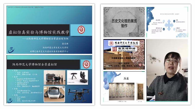在对虚拟馆进行点评阶段,段勇认为陕师大的文科实力很强很有特色,文博专业近年来发展良好,这次展示的四个展览既显示了藏品类型丰富、数量众多、特色鲜明,更重要的是反映陕师大文博科研、教学的实力与水平,很好地体现了大学博物馆的特点,同时他也就展馆的形式设计提出了宝贵的建议;党怀兴肯定了此次展览的学术意义、人才培养价值,提出下一步要提升网上展览的互动性,利用AR等技术,让展品活起来,让观众深入了解藏品的特点与价值,还要进一步挖掘藏品的历史文化价值,希望公司计算机、美术、新传院等专业的师生加入制作团队,并呼吁社会各界人士为公司教育博物馆捐赠文物,发挥博物馆的教育作用;郝永胜认为此次展览中信息化技术、设计理念运用良好,有效实现了历史教学中的交互;邵小龙认为教育博物馆全景虚拟馆是顺应时代要求的博物馆展览新形式,在疫情期间推出是最为切合实际的好方法,而通过网络会议形式邀请专家进行点评是一种创新形式、适应网络时代的新举措;秦始皇帝陵博物院陈列展览部副主任彭文肯定了本次展览的理念设计,并建议利用虚拟技术大胆突破和创新。此外,来自秦始皇帝陵博物院程乾宁、公司教育公司栗洪武教授、郭建中处长、张弛馆长也对全景虚拟馆的建设提出了十分积极的建议。