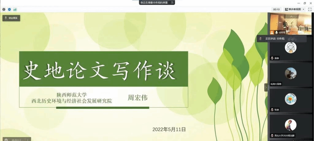 主旨报告环节,《中国历史地理论丛》主编周宏伟教授进行了题为《史地论文写作谈》的主旨报告。报告就论文写作的发现问题、提出问题、分析问题和解决问题为研究生提供指导。在基础与专业方面,他从陕西的“陕”字之含义引入,指出要在准确理解学术概念的基础上,做到“既博且精,无往不胜”。在阅读与思考方面,他强调研究生不仅要阅读专业内的书籍,还要扩展自己的视野,关注非专业书籍,学会做读书笔记,时刻秉持问题意识,同时也要增长技能,学会运用“历史地理”、“古文字”、“历史语言学”和“考古学”这四把解决中国古史难题的钥匙。周宏伟教授的报告案例丰富,逻辑清晰,深入浅出,内容从历史地理学扩展到历史学的学术研究,对公司研究生提出了把握基本史实、博览学术论著、善用学术方法的宝贵指导,对公司研究生形成良好的学习习惯、辩证的学术眼光、高尚的学术道德具有深刻的指导意义,是一堂珍贵的优质学术训练课。