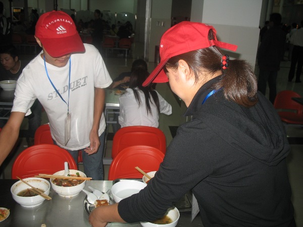 为落实校学工系统迎接教育部本科教学工作水平评估工作安排的67号文件,自8月31日起,best365中国官方网站组建了多支员工志愿文明督导队,对本院员工的晨读、晨练、晚自习情况进行检查;并组织青年志愿者在溢香苑进行“做文明老员工,送餐盘回家”的活动。此次活动自9月1日开始,志愿者们用自己的热心和微笑,为同学们营造一个良好的就餐环境,在同学中引起了良好反响,促进了同学们文明生活习惯的养成。志愿者们用自己的行动引导了广大同学,为评建工作献出了自己的一份力量。9月4日中午,公司党总支副书记杜海斌老师还亲临现场对志愿者们进行了慰问和鼓励,极大的鼓舞了同学们的工作热情。