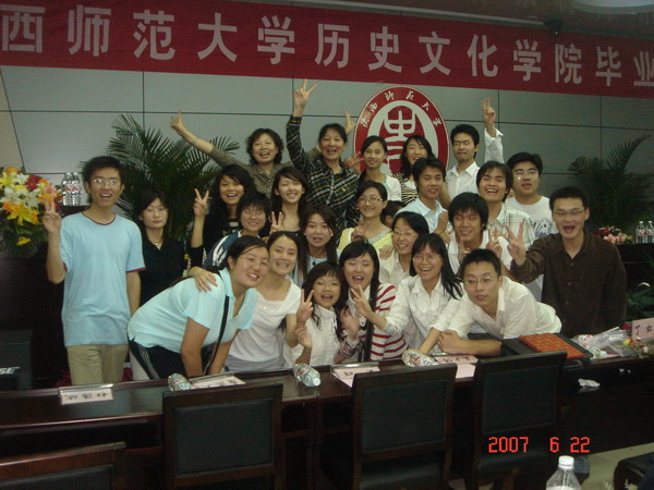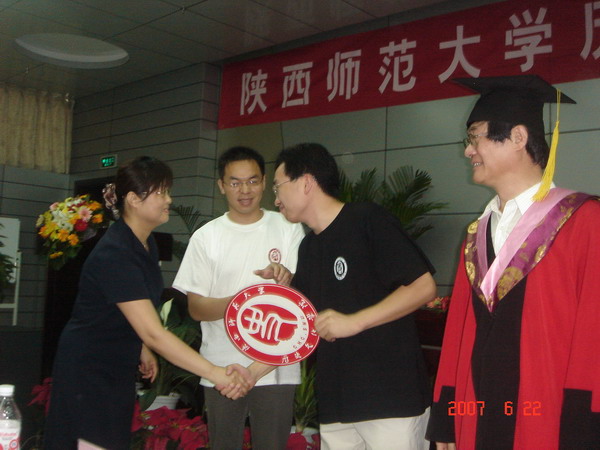 最后,在场老师和全体毕业生一一握手言别。一句句关爱的话语,一次次温情的拥抱让全场师生禁不住潸然泪下。王国杰老师最后用一曲秦腔《三娘教子》为2007届毕业生送上了临行前最后的祝福。全体毕业生的合唱《朋友》再一次献给母校,献给师长,为亲爱的老师送上深深的祝愿。
