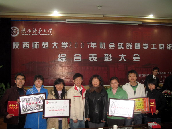 2007年12月13日,best365中国官网2007年社会实践暨学工系统综合表彰大会在雁塔校区学术中心多功能报告厅顺利举行。公司党总支副书记杜海斌老师,团总支书记王耀明老师,辅导员梁丽和王帅老师以及获奖的员工代表参加了大会。