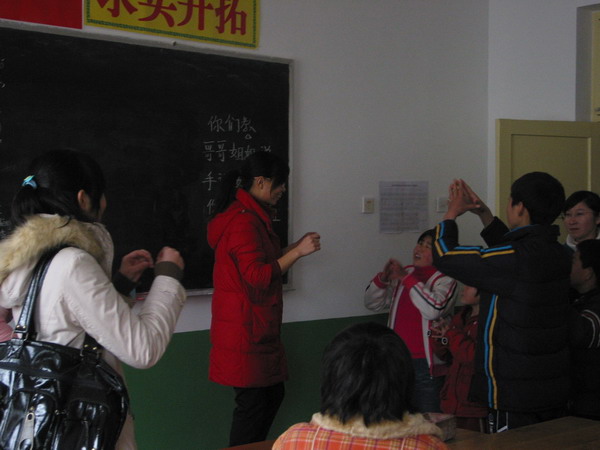 公司青年志愿者的到来,受到了聋哑公司师生的热烈欢迎和真心接待。志愿者们热情很高,和聋哑公司的员工开展了一系列简单而有意义的活动。我们的志愿者们耐心细致地给聋哑员工教折纸,一张薄薄的彩纸架起了双方心灵沟通的桥梁;手把手的教着,然后看着那一个个心灵互动而成的作品,聋哑小朋友笑了,我们的青年志愿者也笑了。接着我们大家还一起开展了跳绳、踢毽子,以及老鹰捉小鸡等活动,气氛相当活跃。稍后,聋哑员工又给我们的志愿者教了一些常用手语,大家都很投入。大朋友与小朋友互教互学,心与心之间单纯而真挚的交流,爱心让这个冬天更温暖。