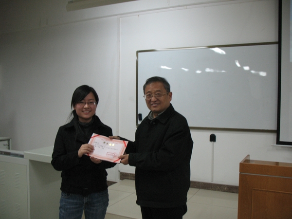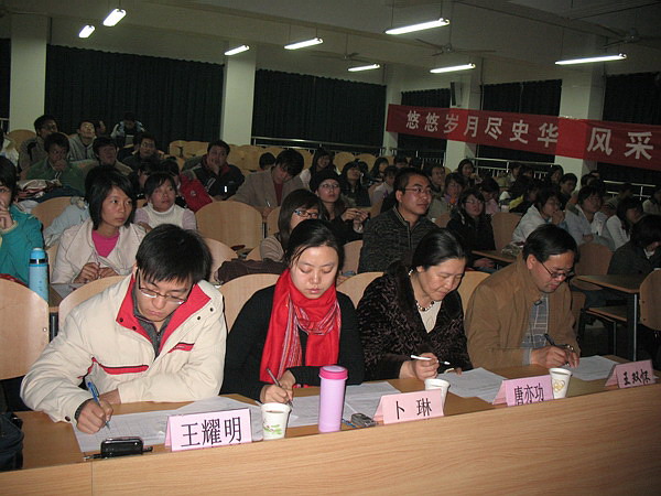 本次比赛邀请了臧振老师、曹维安老师、袁林老师、赵克礼老师、王双怀老师、唐亦功老师、卜琳老师、王耀明老师等深受员工欢迎的教师担任评委。晚7点10分,讲课比赛准时召开,经过严格初选与复试,共有8名选手闯入决赛,他们利用所学的专业知识,并充分发挥自己的想象力与讲课技能,讲述了涉及社会各个方面的多个课题。在讲课环节之后,比赛又设置了三笔字技能比赛、英语口语比赛、历史知识比赛等环节,从多个方面考察选手综合素质,比赛间隙还穿插有妙趣横生的观众答题环节,使观众也能够深入参与其中,使比赛进入了高潮。随后由赵克礼老师、曹维安老师、臧振老师以及卜琳老师从讲课效果、专业技能等方面进行了点评,使选手和同学们能够认识到自己的优点及不足,在以后的日子里能够加以注意。经过认真紧张的评分计算,一等奖最终由05级(1)班董小雪同学获得,其他同学则分获二、三等奖以及优秀奖,最后比赛评委和获奖同学亲切合影,并向他们表示了诚挚的祝贺。比赛在和谐向上的气氛中结束,选手们的出色发挥以及评委们的精彩点评使我们度过了一个美好的夜晚。