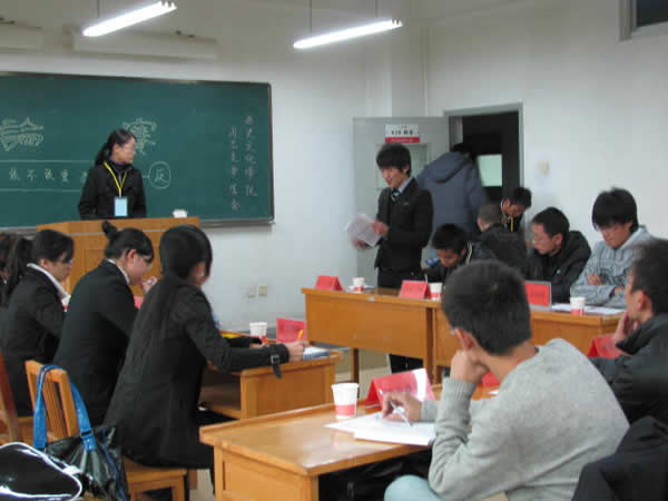11月11日, 由公司团总支员工会实践部负责的综合素质大赛之“辩论赛”在文渊楼426教室举行。本次活动由古典文献班和历史一班选派的正、反方两支队伍共8名选手参加,评委嘉宾为07级辅导员袁良勇老师和校员工会、政治经济公司、best365中国官方网站研究生会代表共5人组成,同时也有班级的亲友团到场为选手们加油助威。