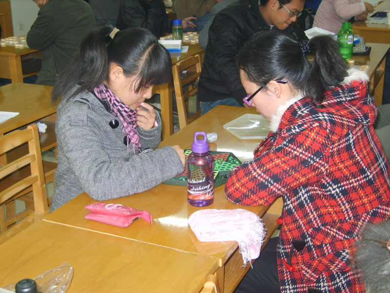 11月14日早8:00比赛正式开始。公司研究生踊跃报名,组成了人数庞大的参赛队伍,参加了其中全部项目的比赛。最后经过几个回合的较量,取得了优异的成绩。其中公司选手陈佳佳、李萃娟,刘珊珊、巨坚强、杨德全和王逸之、姜秀峰、蒙海亮同学分别闯进了跳棋、五子棋和象棋组全校前六。而陈佳佳、刘珊珊、王逸之同学凭借个人高超的棋艺和现场出色的发挥,一路过关斩将最终闯进前三名的决赛,取得跳棋组第三名,五子棋组第二名,象棋组第三名。