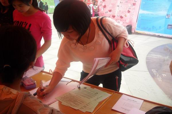 此前,为了充分展现社团风采、顺利开展纳新工作,社团主要负责人及院团总支员工会主要员工干部进行了充分细致的前期准备。10月9日,社团纳新工作正式开始。雪莲英语俱乐部的主要干部们积极开展各项工作,热情接待前来咨询和报名的同学。与此同时,人文景观考察协会的骨干们也不甘示弱;他们热情地向过往同学发放宣传资料,并细心地为咨询的同学讲解社团的活动情况。纳新工作进展顺利。