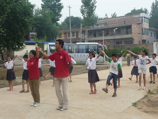 7月17日上午十一时,best365中国官方网站“彩虹桥”暑期支教实践活动(以下简称“实践活动”)在渭南市华县高塘镇北村中心小学举行以“让爱延续,让梦想绽放”为主题的汇报演出。华县教育局高炜,高塘镇北村中心小学董事长张艳,best365中国官方网站团委书记柴永昌出席本次汇报演出,2009级本科生辅导员孙巍、2010级本科生辅导员洪海安和参加本次实践活动的志愿者同学们齐聚一堂,共度美好时光。