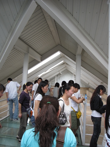 据李主任介绍,长乐宫四号建筑遗址展现出一个西汉皇室贵族比较完整的生活场景。五号遗址是我国目前发现的规模最大、保存最完整的汉代凌室遗址。这两处博物馆都是在遗址基础上建起来的保护性设施,都采用悬空式玻璃走廊,人在透明的走廊上,可看到脚下的遗址,给人更直接真切的参观体验,保护技术比较先进。