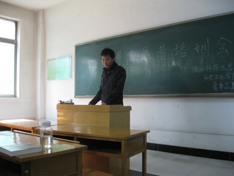 本次活动的培训人员由上一年志愿服务中表现突出的讲解员担任。活动开始,社团负责人对本次活动的内容和目的作了简单介绍;随后,三位培训人员就在博物馆的培训中、在讲解过程中所遇到的需要注意的问题,结合自身经历,作了详细的阐述;培训人员认真讲述,同学们认真笔记,并同培训人员交流自己可能遇到的问题,及相应的解决方法,会场气氛活跃;最后,社团负责人就近期赴陕西历史博物馆进行专业培训作了相应安排。