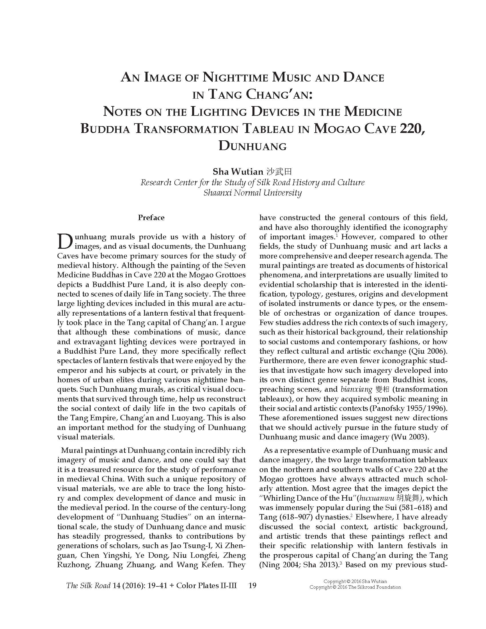 新近出版的美国丝绸之路研究学术杂志The Silk Road第14期(2016年度)发表公司丝绸之路历史文化研究中心沙武田教授的英文论文An Image of Nighttime Music and Dance in Tang Chang'an: Notes on the Lighting Devices in the Medicine Buddha Transformation Tableau in Mogao Cave 220, Dunhuang.