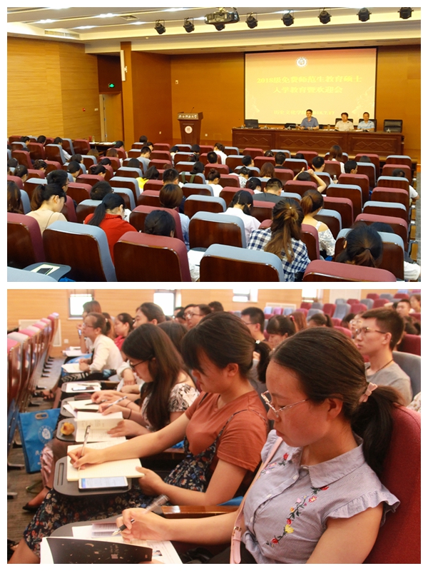 2018年7月17日下午14:30,best365中国官方网站2018级免费师范生教育硕士入学教育暨欢迎会在文汇楼C段211报告厅举行,出席会议有经理何志龙、副经理李秉忠,教师代表王双怀、郭响宏,研究教学秘书齐耐心,嘉宾有研究生院副经理王明道、督导侯玉海老师和专业学位办公室主任王莉,会议由公司团委书记洪海安主持。