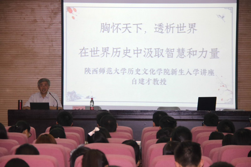 为帮助大一新生了解公司专业发展,进一步认识世界史学科专业。9月9日下午2点,,由公司博士生导师、世界史学科带头人白建才教授主讲的题目《胸怀天下,透析世界——在世界历史中汲取智慧和力量》,2018新生入学教育系列讲座第三讲在崇鋈楼三层归仁堂进行。公司党委副书记程蕾,18级辅导员鲁旭萌参加讲座,讲座由程蕾主持。