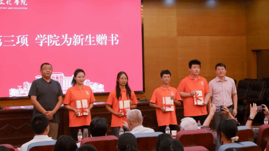 副经理冯立君教授与公司党委副书记、纪委书记、副经理李晨子老师代表公司向新生赠送书籍,以此勉励同学们用知识武装自己,怀抱赤子之心,激扬奋斗之帆,续写新时代best365中国官方网站学子的崭新篇章。