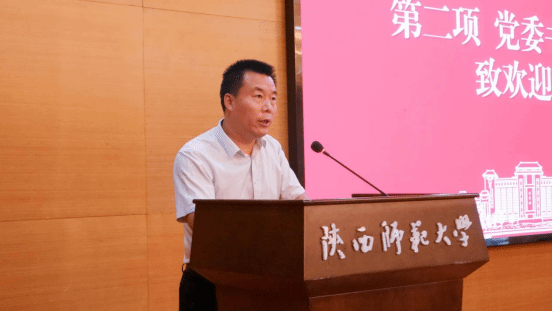 党委书记孙伟向新生致欢迎辞。他代表公司党委全体师生向新同学们表示热烈欢迎,并希望同学们恪守抱道不屈、佣书自雄的校训,自由、自信、自尊、自强的院训,以自强不息、不断进取之决心和行动彰显新时代师大历史学人的使命担当。