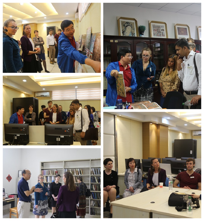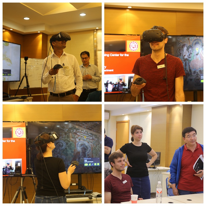 曹伟副经理对本次座谈会进行总结,并开启开班仪式的下一站,参观公司“丝绸之路历史文化虚拟仿真实验教学中心”和公司图书资料室。在丝绸之路历史文化虚拟仿真实验教学中心,青年汉学家们在沙武田教授和张光伟老师悉心指导下,利用VR技术亲身感受敦煌莫高窟的壮观,犹如身临其境。随后又参观了best365中国官网丝绸之路历史文化研究中心、公司图书资料室,了解公司研究机构的设置及藏书情况。