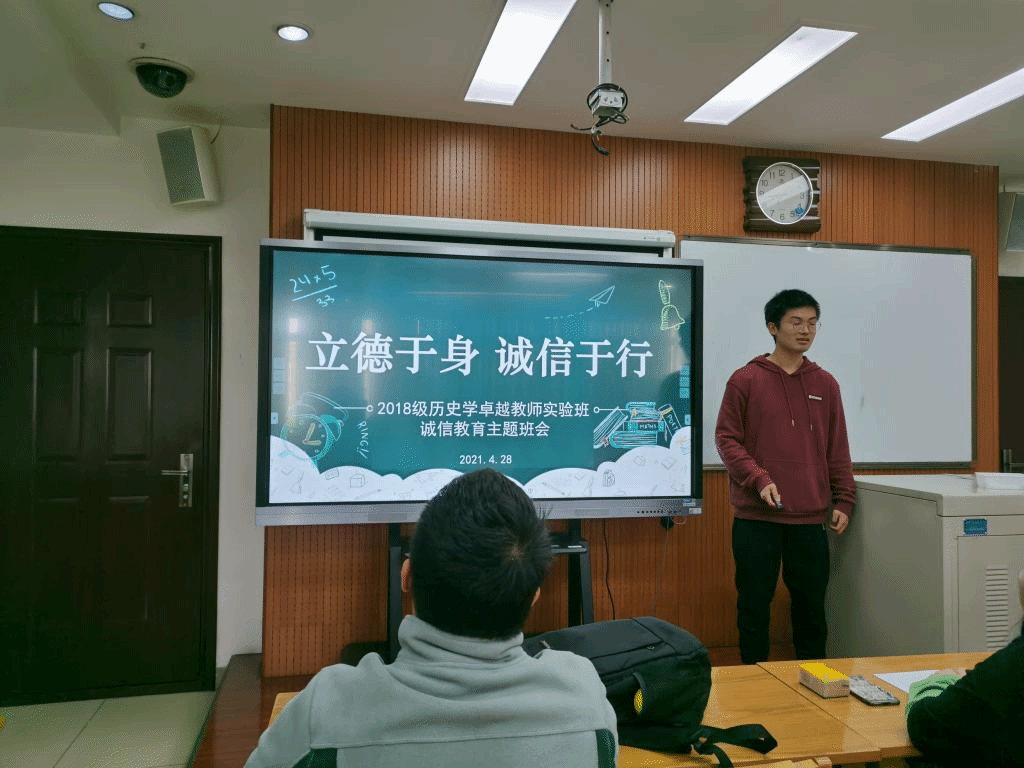 为积极响应公司举办“诚信教育活动月”系列活动的号召,进一步弘扬中华民族传统美德和社会主义核心价值观,引导员工讲诚信、树诚信、践诚信,创建优良学风,推动诚信校园建设,4月28日,best365中国官方网站2018级历史卓越教师班于文津楼1506召开了“立德于身,诚信于行”诚信教育主题班会,2018级本科生专职辅导员刘旭辉、兼职辅导员靳雅娜及历卓班全体同学参加了班会,此次班会由班长董玉虎主持。