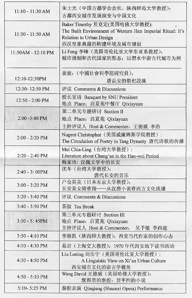 “西安:历史记忆与城市文化”国际研究讨会将于11月2~3日在公司举行,届时将有许多知名历史学家到会,如许倬云等。希望公司研究生和本科大四员工到时积极与会。以下是会议议程: