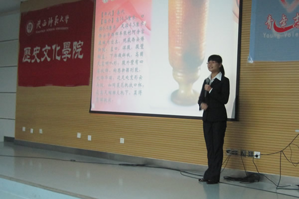 接着,陕西历史博物馆宣教部部长步燕老师也在开幕式上致辞。她对同学们不求回报的为志愿服务事业付出与奉献表示感谢,同时还指出,陕西历史博物馆正在努力搭建志愿者网络平台,为志愿者们提供交流的平台。随后,2008级历史专业员工包希悉也代表志愿者发言,表示了在志愿服务中进一步锻炼自我、提升能力的决心。