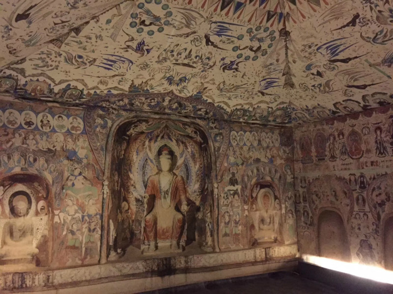 进入六艺楼,映入眼帘的是有浓厚敦煌特色的展厅布置。沙武田老师对前来参观的同学们表示欢迎,他用轻松幽默的开场语,拉近了与同学之间的距离。看着一幅幅古朴清晰的敦煌壁画,沙武田老师向大家一一介绍了它们的“前世今生”,赋予了敦煌壁画新的内涵与深意。沙武田讲到,敦煌的壁画之所以能够如此清晰地呈现在我们面前,很大程度上得益于高保真数字化技术还原的运用,他提醒同学们研究古代历史遗迹要与现代技术结合联合起来。接着,沙武田老师讲述了从公元4世纪到公元14世纪时间跨度长达1000多年的敦煌壁画作品。同学们走入本次展览特别建造的仿真洞窟,沙老师为同学们讲述了洞窟的构造,以及在敦煌保护洞窟壁画的经历,同学们对一代代敦煌考古工作者的辛勤付出肃然起敬。